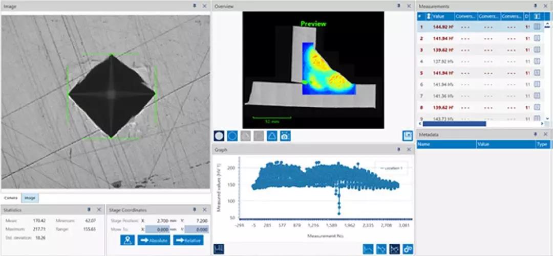 DiaMet 不僅能很大的提高焊接測試的效率與準(zhǔn)確性,還可以進(jìn)一步展示焊接區(qū)域的硬度分布,幫助使用者進(jìn)行數(shù)據(jù)分析。