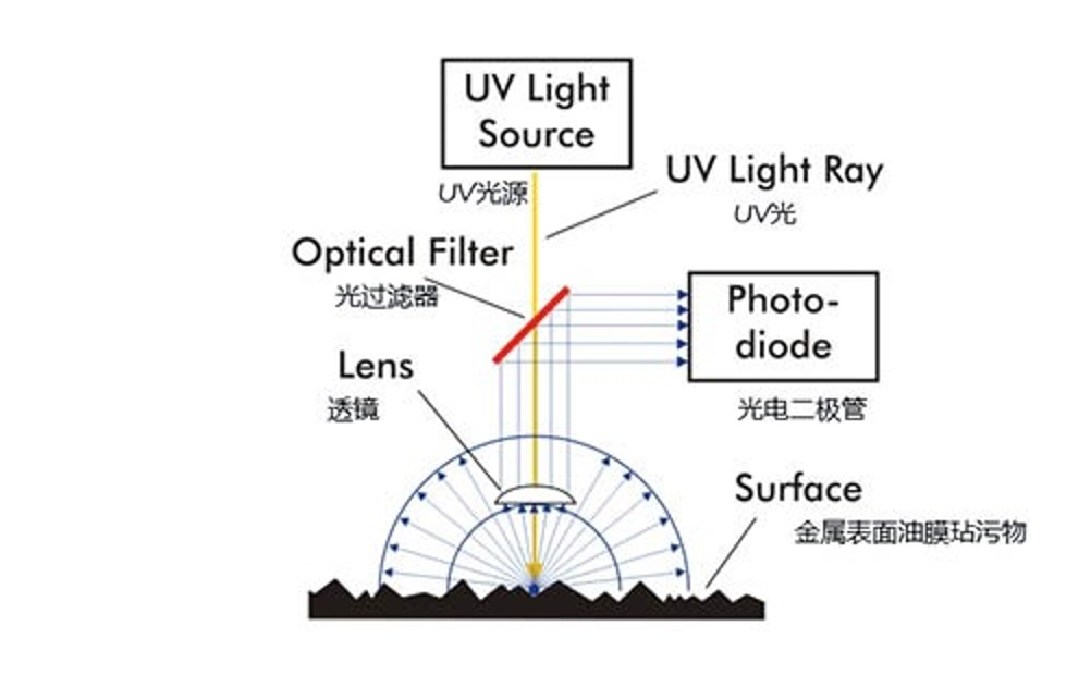 對于普遍清潔工藝的污染物,析塔SITA表面清潔度儀的測試參數設計恰當。由于有機物被UV光激發后具有很強的自體熒光特性,因此該儀器能檢測出油脂和殘余表面活性劑、潤滑油等有機污染物。此外,它也可監測防腐劑或粘膠劑等油膜層的厚度。